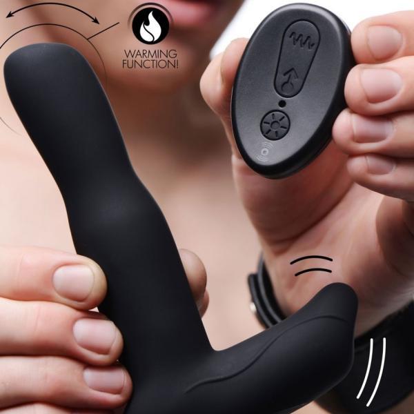 This groundbreaking anal tool strokes your prostate, vibrates, and even warms up with the push of a button up to 25 feet away! Whether you appreciate the convenience during solo play, or the power during couples play, the wireless remote is an exciting feature for use at home or out on the town! Simple buttons allow you to play with 6 modes of vibration and 3 speeds of the prostate stroking motion. The tip will warm up to apply a comfortable, but exciting heat to that special spot. The shaft will move tantalizingly, while the external portion vibrates against your perineum. Let the pleasure take control with this easy-to-use, remote-controlled male pleasure tool. Made of premium silicone, it is phthalate-free for body safety, and non-porous for thorough sanitization. Clean this waterproof device after use with warm water and mild soap or toy cleaner.
