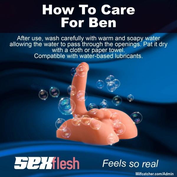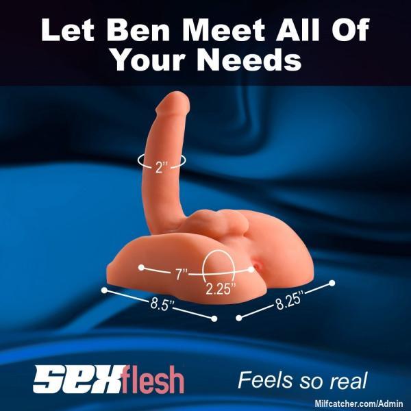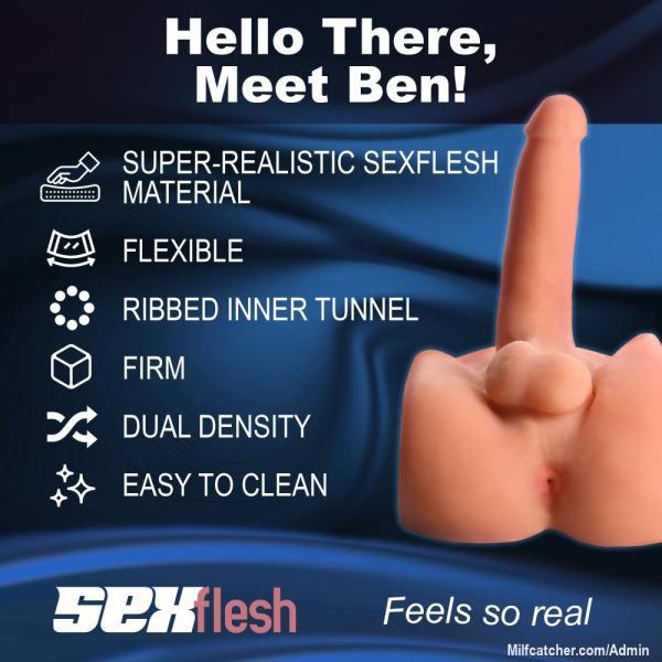 Ride a thick cock or a tight ass with the SexFlesh Both Ways Ben! This lifesize, super-realistic masturbator and dildo combo meets all of your needs, for whatever mood you are in. The incredibly lifelike SexFlesh material mimics a supple, eager ass for you to penetrate, complete with ribbed inner tunnel for maximum stimulation and through hole for easy clean-up. The generous cock not only boasts a dual-density firm core and fleshy surface to make all of your meaty fantasies come to life, but is also posable so you can bend and position it to the prefect angle for you. Take your time and try to accommodate as much of the over 2 inch wide shaft as you can! Enjoy your preference to take or be taken with Both Ways Ben!