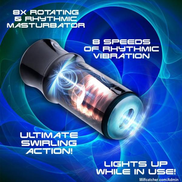 Beat off in the ultimate swirling sensations of a revolutionary rechargeable stroker! Indulge in 8 different rhythmic speeds of vibration and rotation! Your cock has never felt anything like the soft, textured interior of this male masturbation device. Turn off the lights and feel the intense, revolving shaft massage while the lights change color on this unique mens toy! The removable cap makes this orgasmic stroker easy to store and perfect for travel. Just charge it up via the USB charger and shove your cock in for a one-of-a-kind experience of spiraling pleasure!