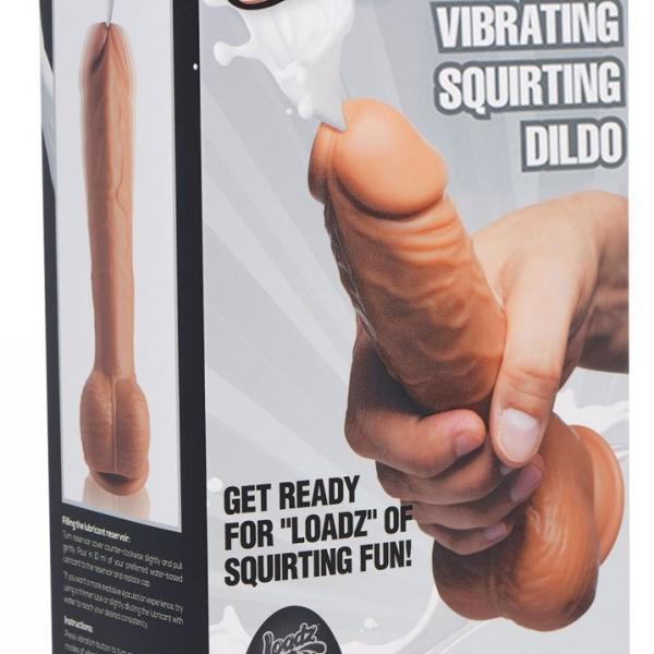 Get ready for Loadz of fun with this vibrating squirting dildo! This 8 inch dildo comes with 10 modes of vibration to suit any mood - buzz yourself to orgasm and entertain yourself, your partner, or your audience with a shot of your choice of liquid wherever you fancy.